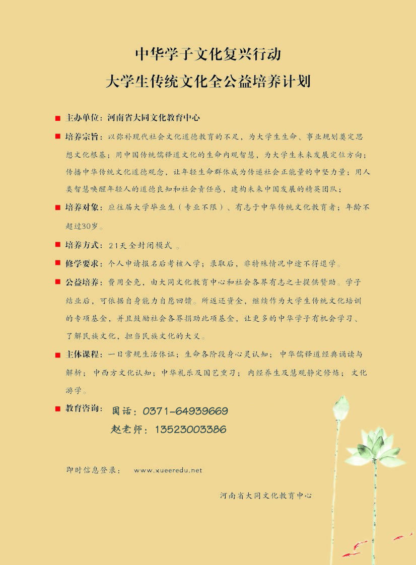 大学生中华文化全公益培养计划