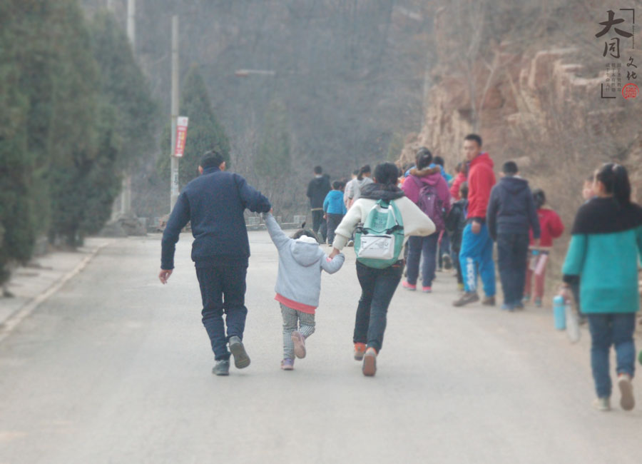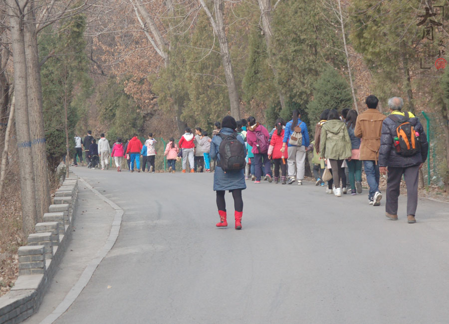 大带小,手拉手,我们一起去卧龙山上,走一走......