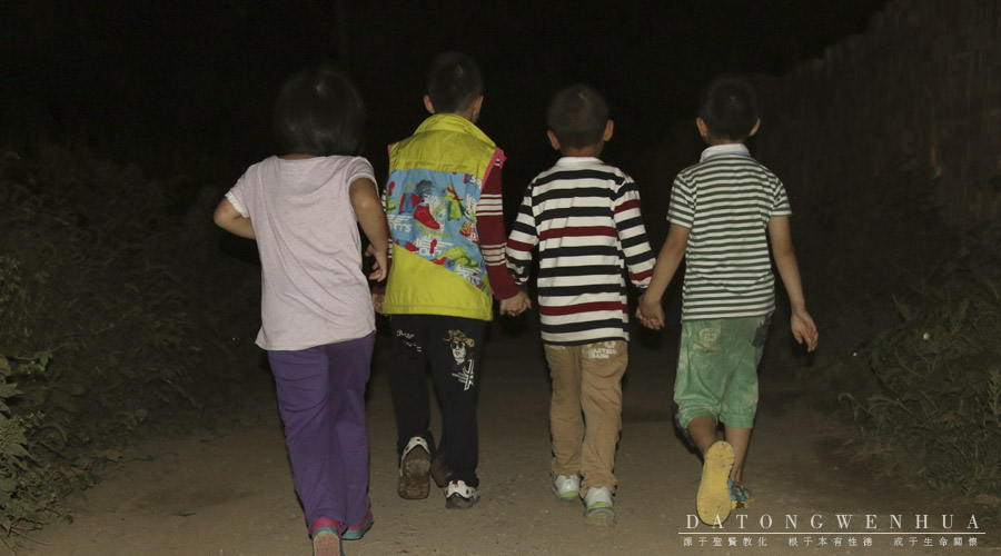 看完之后,在老师的建议下,他们又把它放生了。其中这四个小孩,愿意打头阵,前去探路。