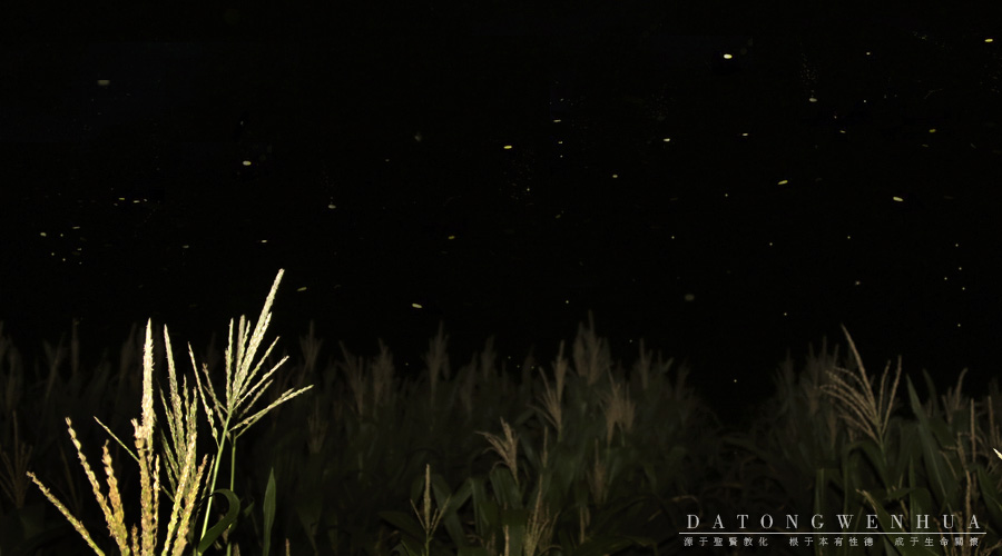 走到一块玉米地,小田老师一个纵身跳进去,然后跑回来,才有我们看到的这番景象:荧火虫满天飞。真美!
