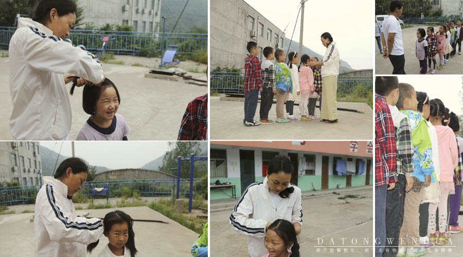 一大早,不忘记昨天小田老师答应带他们去玉米地摘玉米的承诺,早早的起床等候,只是忘记梳头,刘老师在精心为他们打理。之后,又教他们日常礼仪,站姿、走路、问好等。
