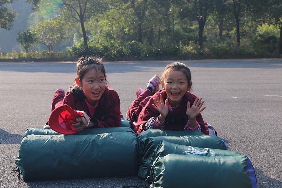 刘兰萱(7岁):有点累,包越背越重。