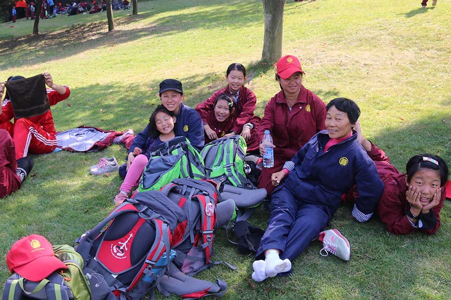 我们组的其他队员也都非常优秀,杨至璁虽然看起来很瘦小,但走起路来一点也不弱。第一次走30公里那天,快到终点时他确实有点受不住了,一个人边走边流泪,我发现后帮他提包,结果他只休息了两三分钟,就告诉我已经休息好了,把包重新背在自己身上。薛丁瑜,也是本次游学队伍中年龄较小的同学,从新学期开学以来,一直在追求进步。有时候他会跑到我身边偷偷告诉我:“任老师,今天我又扔掉了一个垃圾包。”然后后面就是一堆流水帐似的述说。我听得津津有味,因为这正是成长的声音,快乐的味道。
