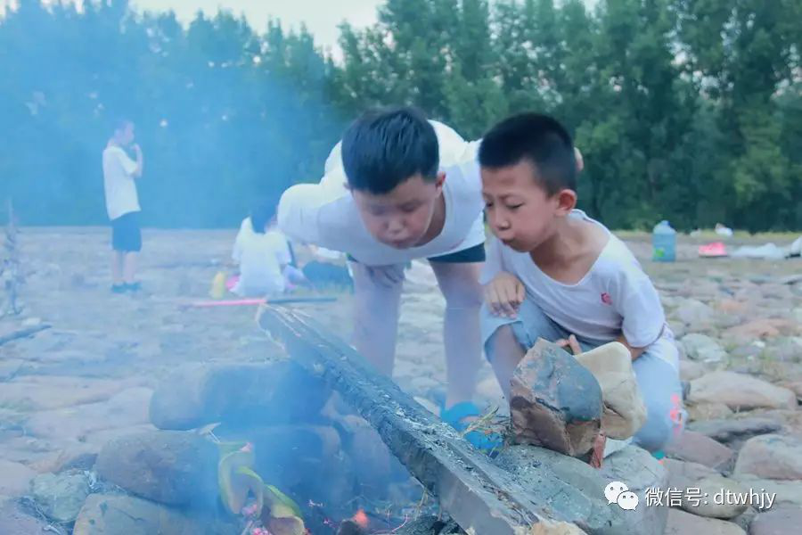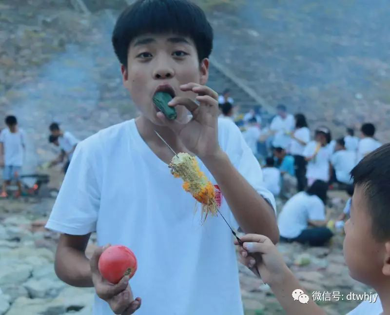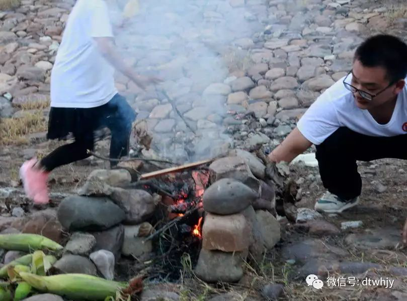 大男生们负责用石头堆烤玉米的“灶台”,女生和小孩子们则承担起拾柴火的任务。大家各司其职,各尽其力,甚至连最小的5岁多的小朋友,也在帮学长们捡石头。
