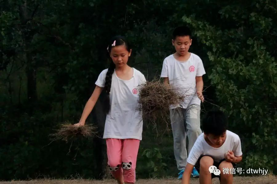 不到半小时,在孩子们积极的劳作下,用来引火的干草已经有半人之高,看着自己用一把把草堆起来的“战果”,些许的疲惫也难掩他们脸上胜利的喜悦。