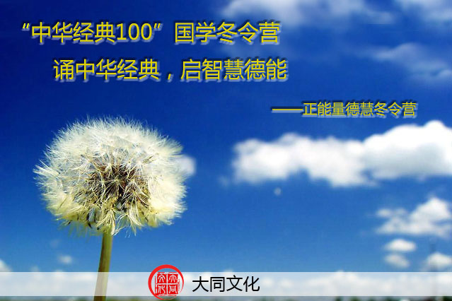 在这个储藏能量的季节里回归自然,给心灵一次能量的充盈,让生命有一个飞跃升华,为来年的生发打下坚实的基奠!       “中华经典100”国学冬令营