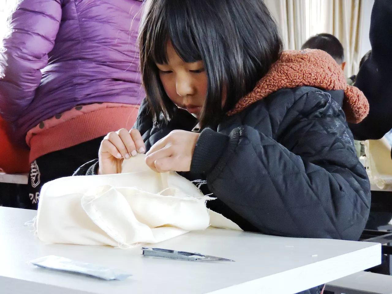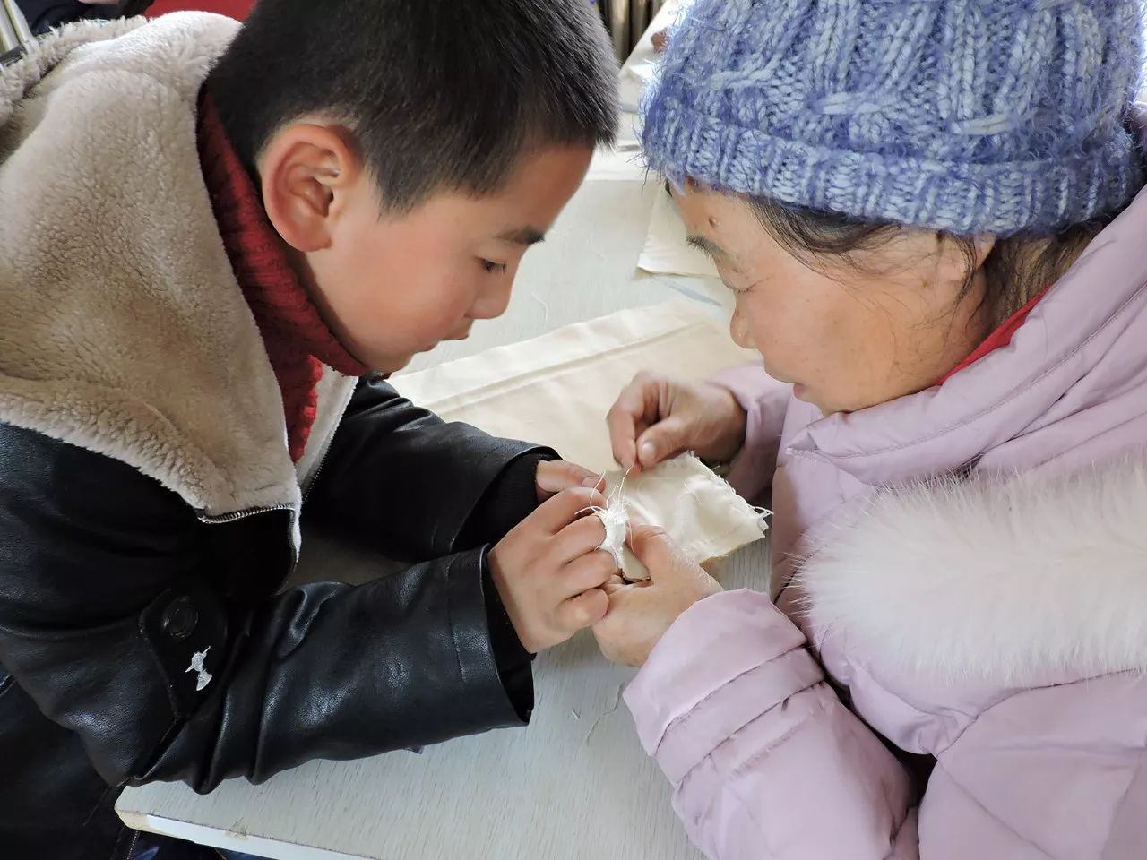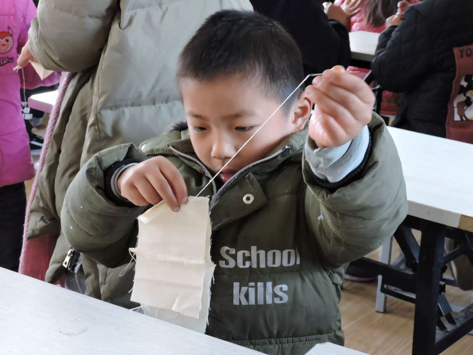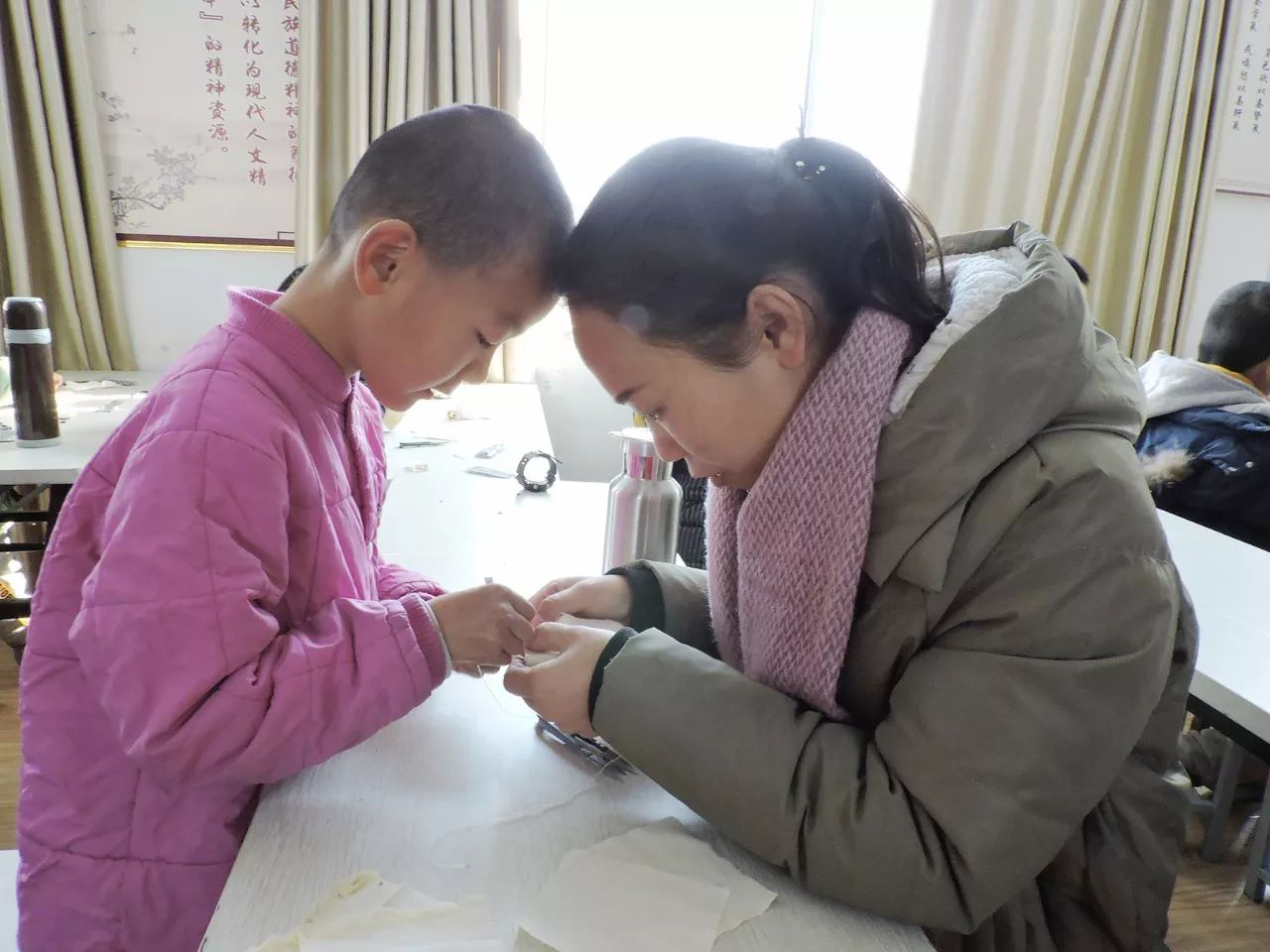 “老師,你看我這樣縫,對不對?”