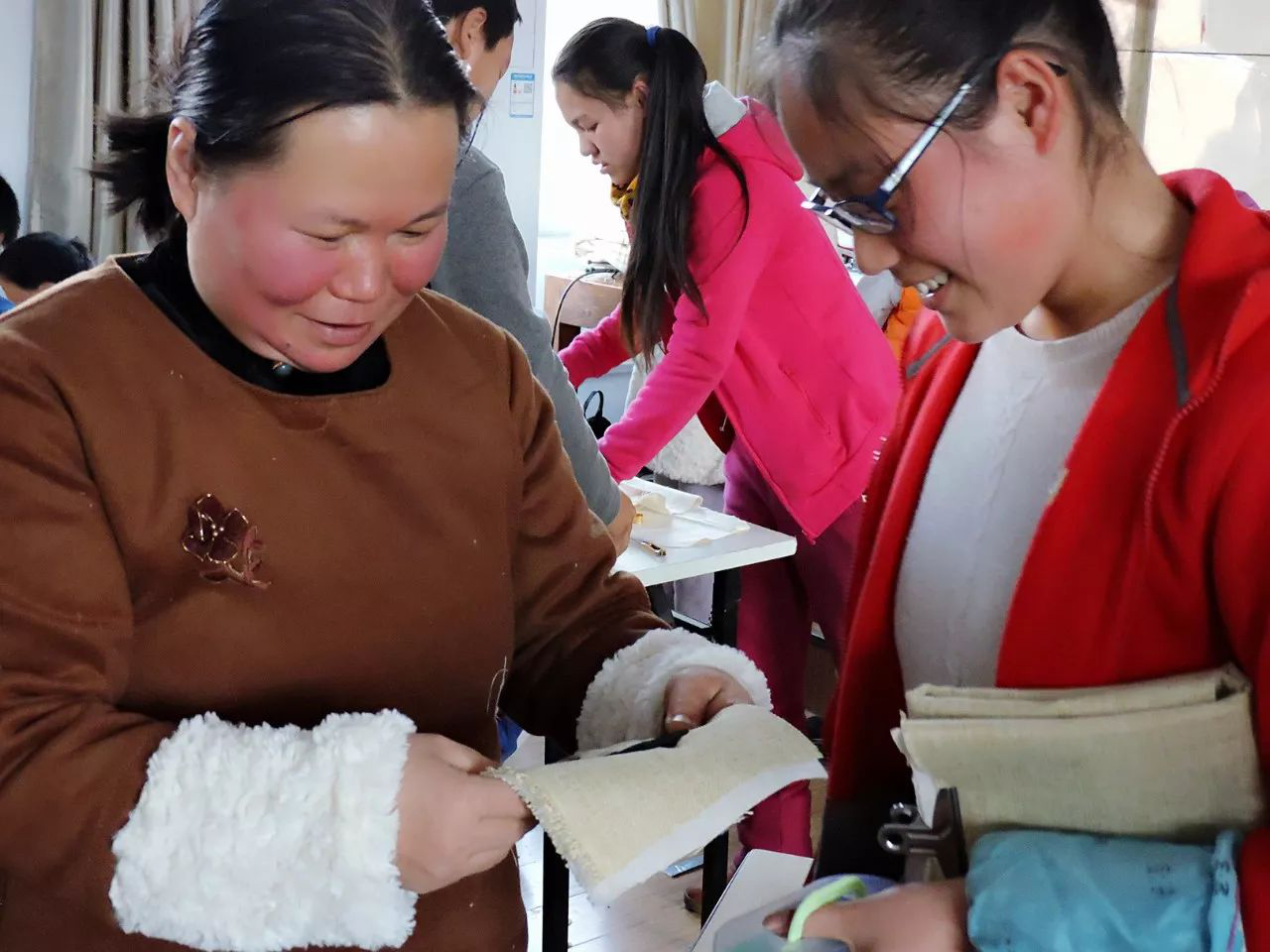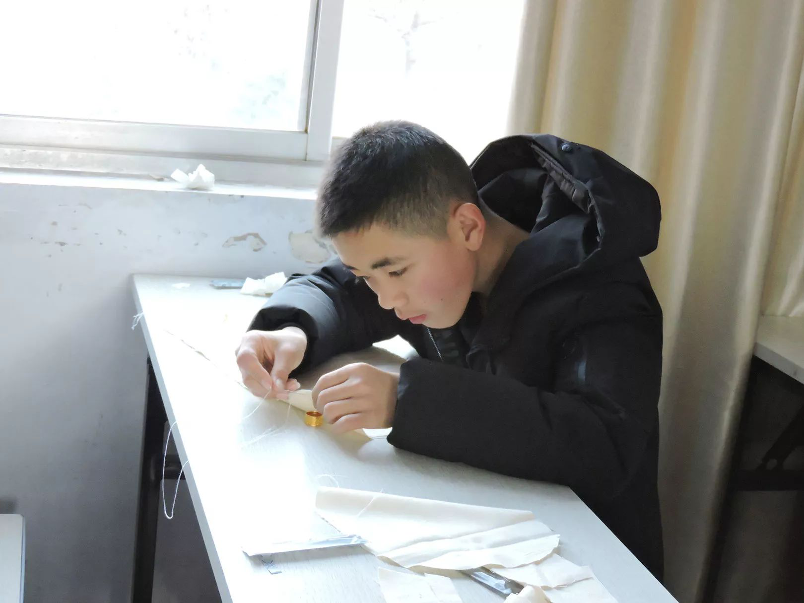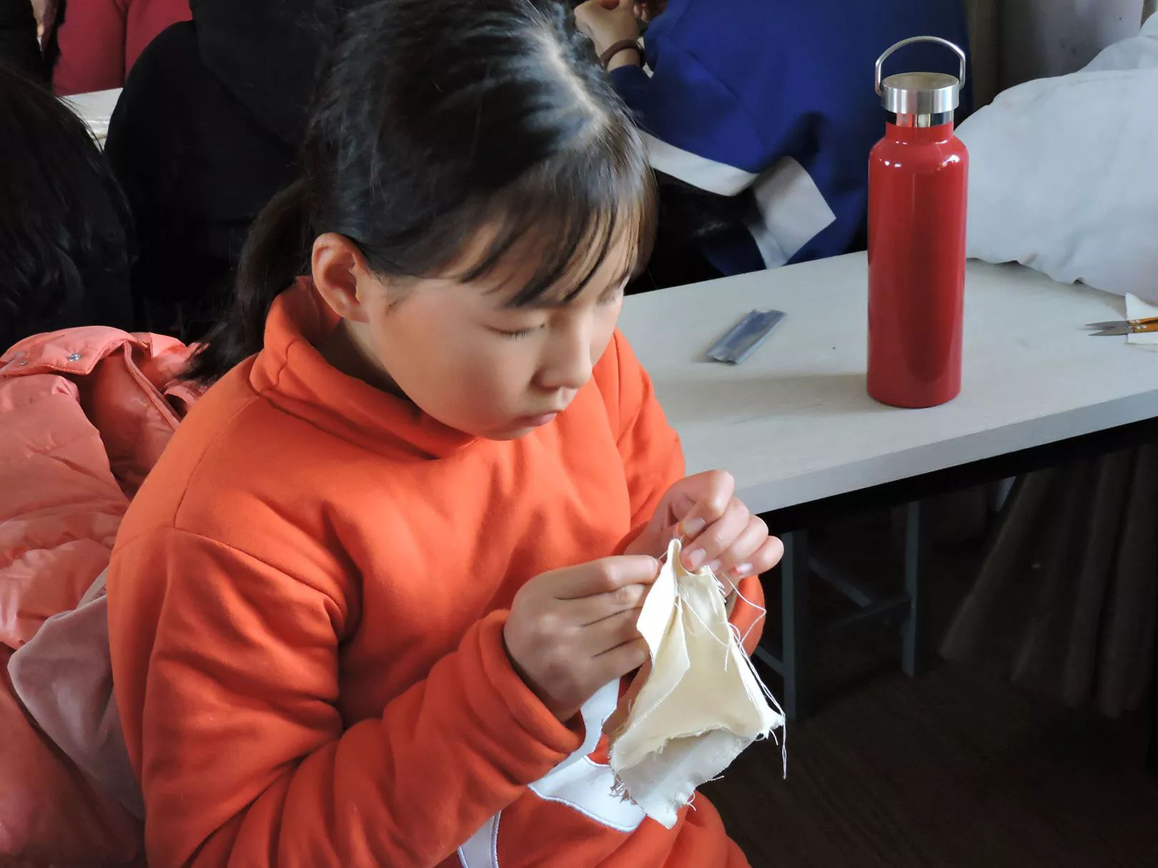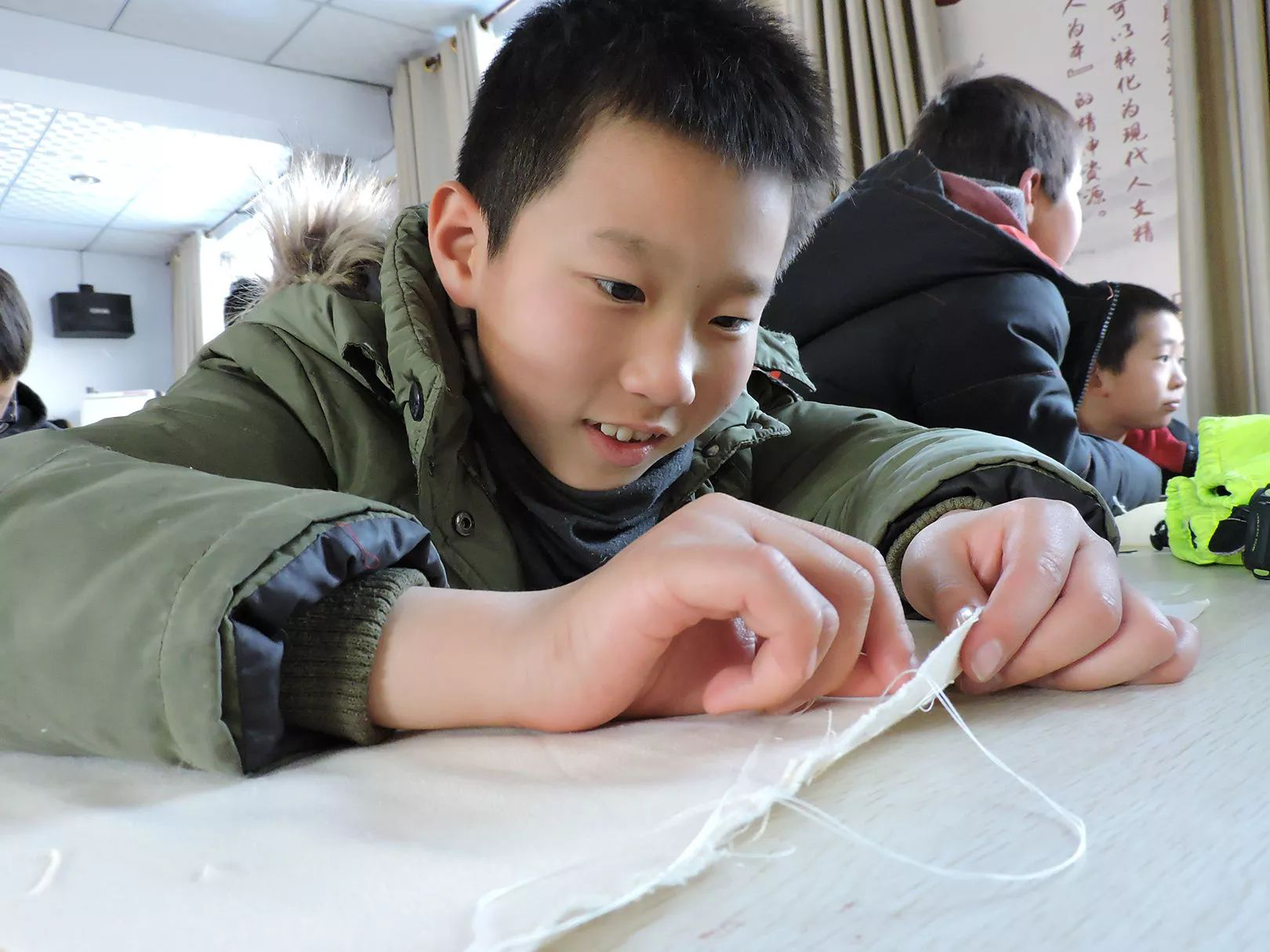 “老師,你看我這樣縫,對不對?”