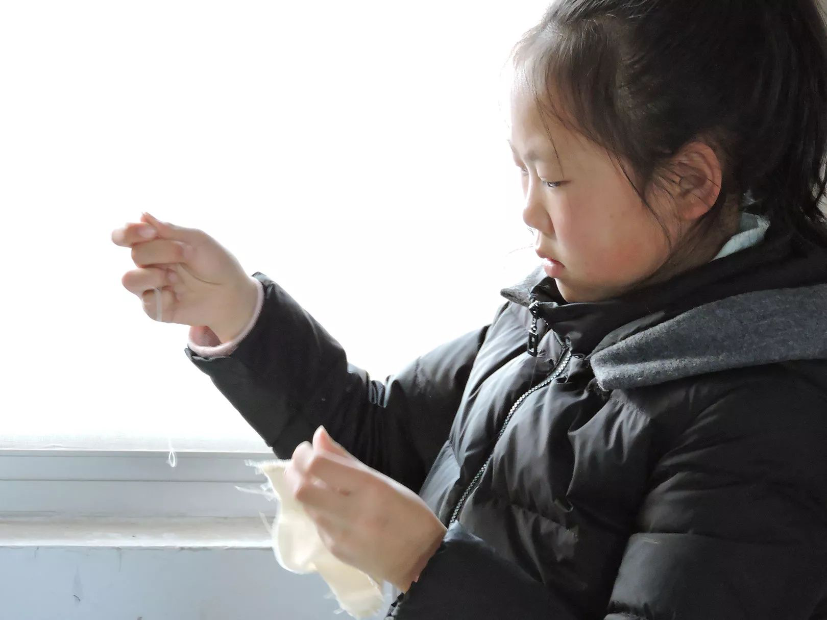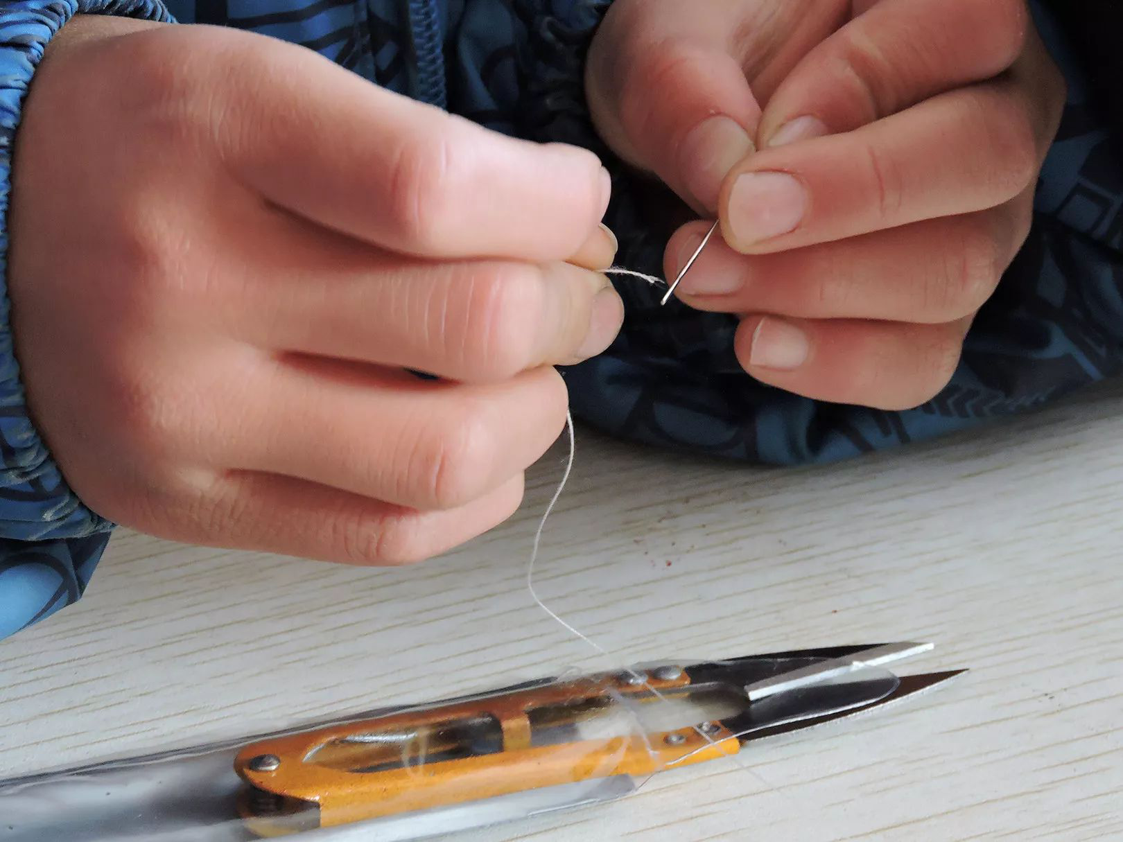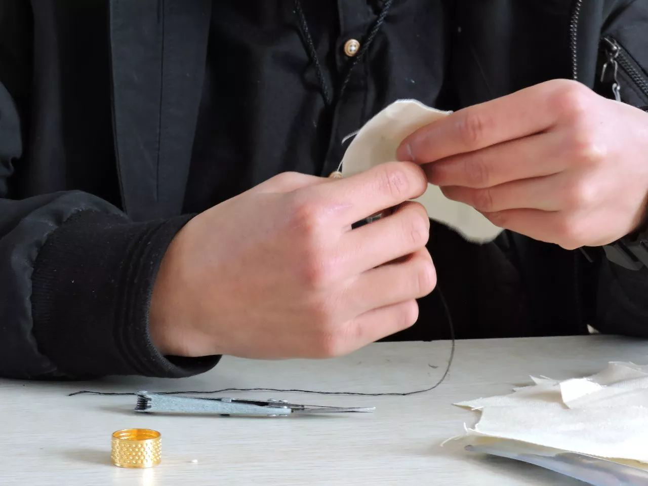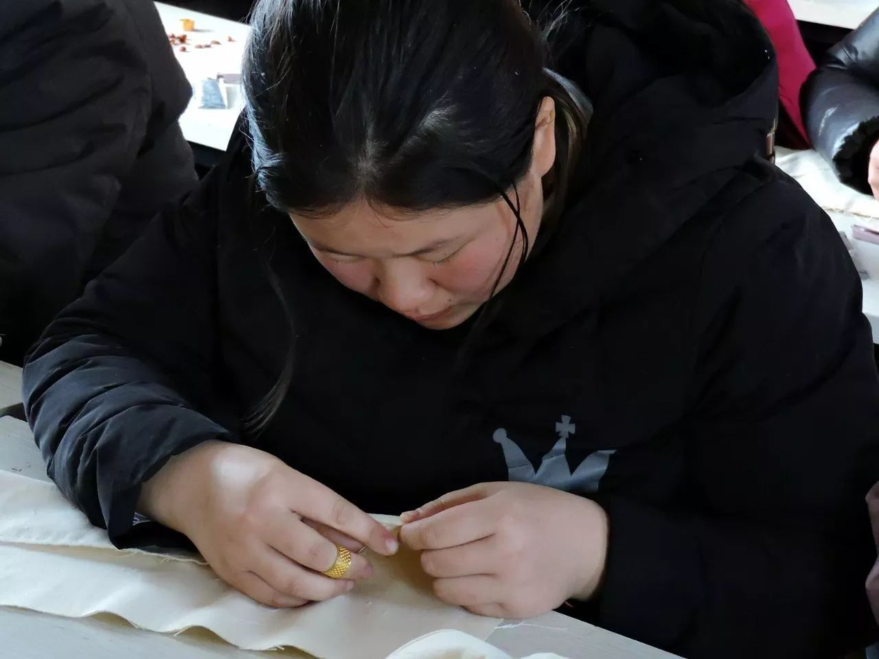 “老師,你看我這樣縫,對不對?”