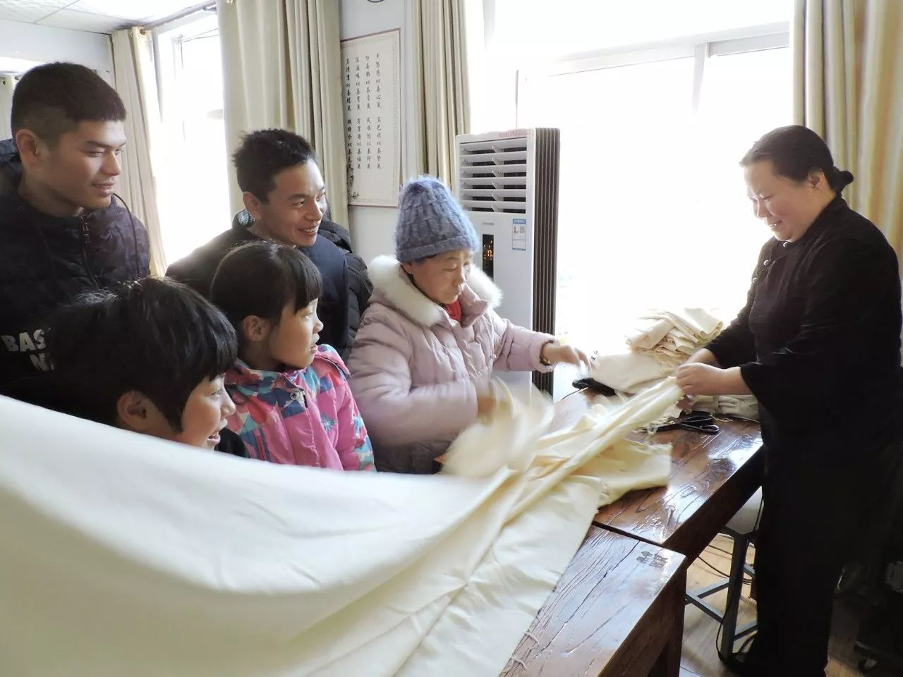 孩子笑着,又拿走几片布料。