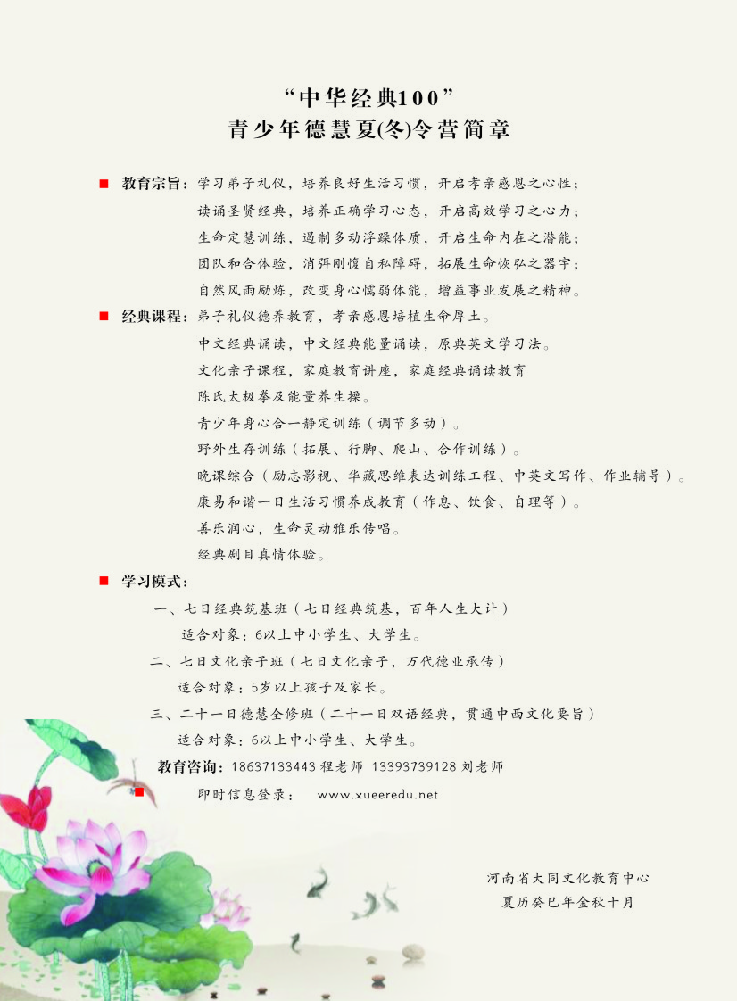 “中华经典100”青少年德慧夏(冬)令营
