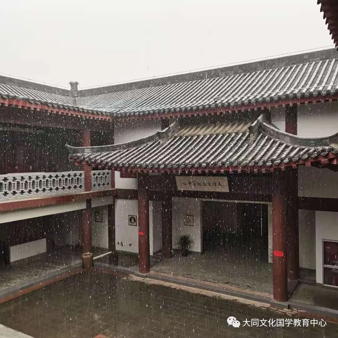 2020年的第一场雪,是从早饭后自地下餐厅上来后发现的。古朴的小院,青砖灰瓦,飞檐雕梁,一方天井,一方天地,点滴细雨夹杂着晶莹薄片,自上而下飘洒如织。